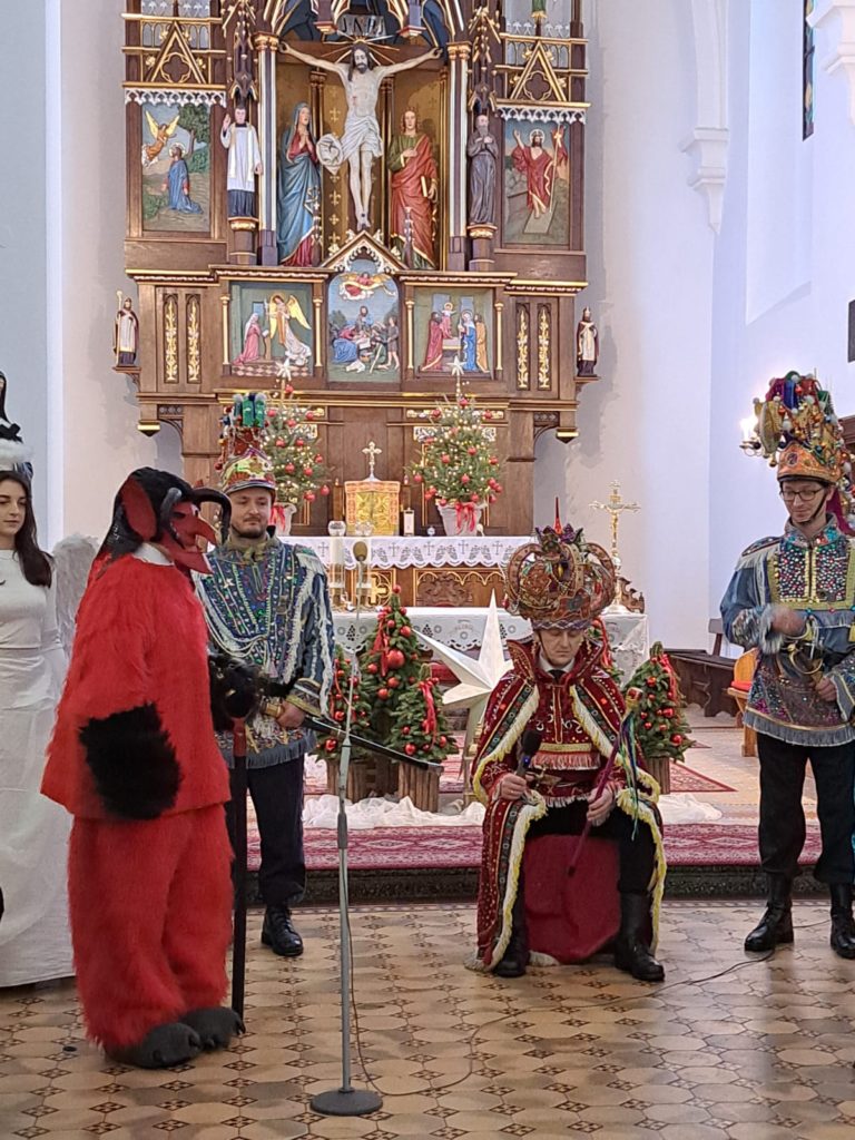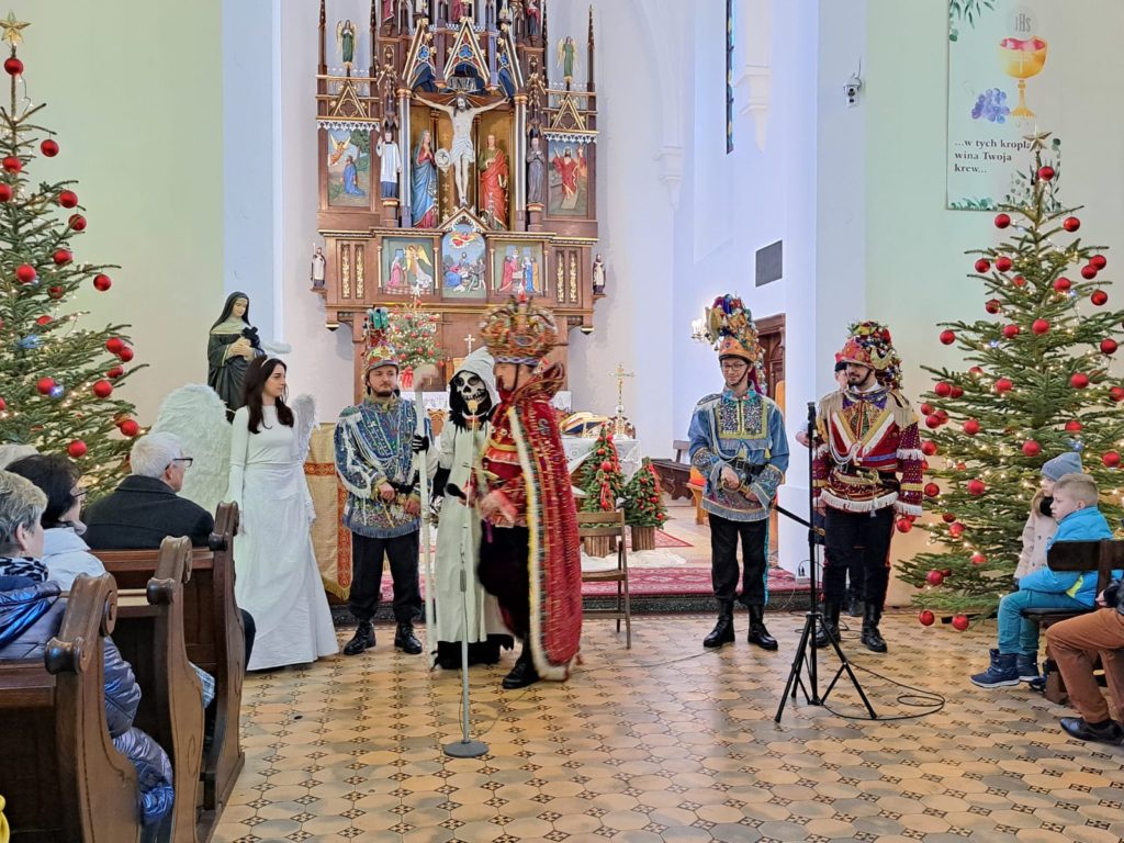 Artyści pięknie i sugestywnie odtworzyli sceny przyjścia Jezusa na świat, recytowali i śpiewali, a całość zaprezentowanego widowiska dopełniły bogato zdobione stroje, przepięknie odznaczające się w kościelnych wnętrzach. Po widowiskowym przedstawieniu, orkiestra zabrała wszystkich w podróż muzyczną, podczas której zabrzmiały piękne kolędy i pastorałki w aranżacjach podkreślających świąteczny nastrój.