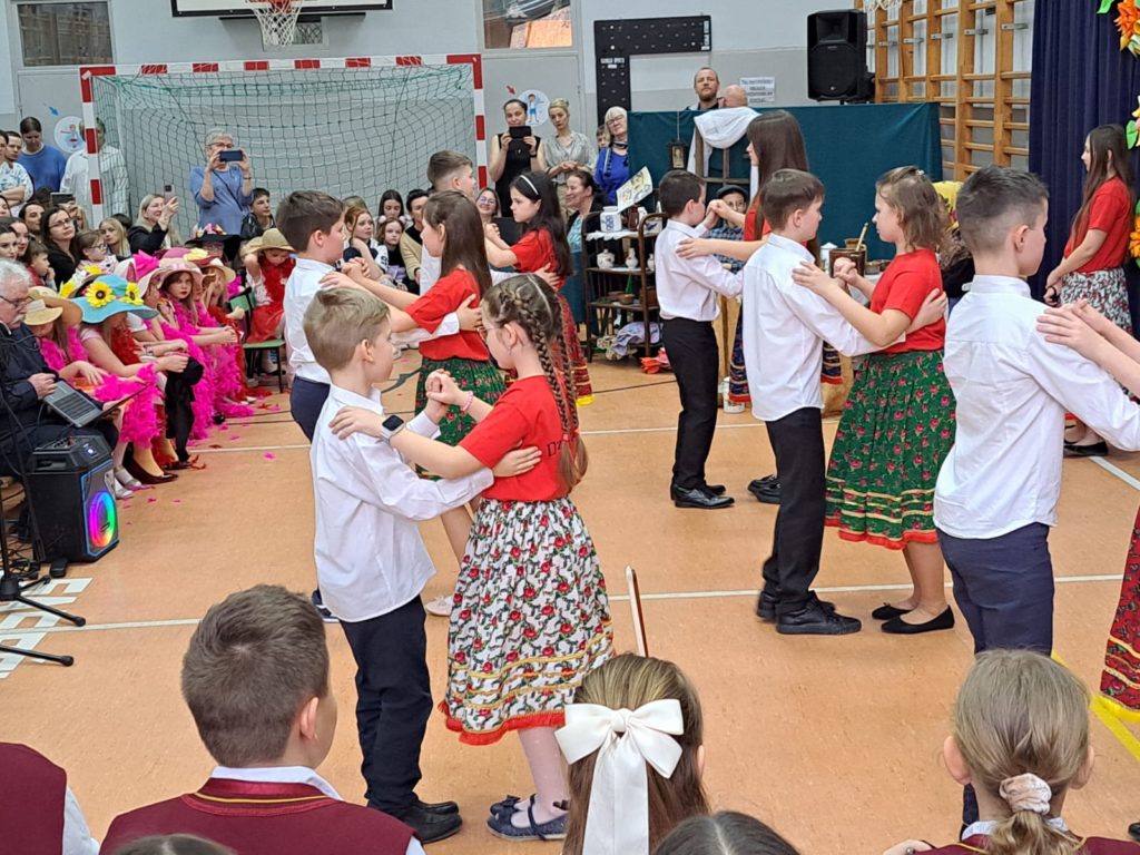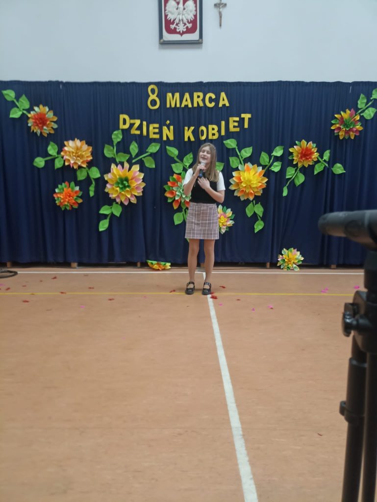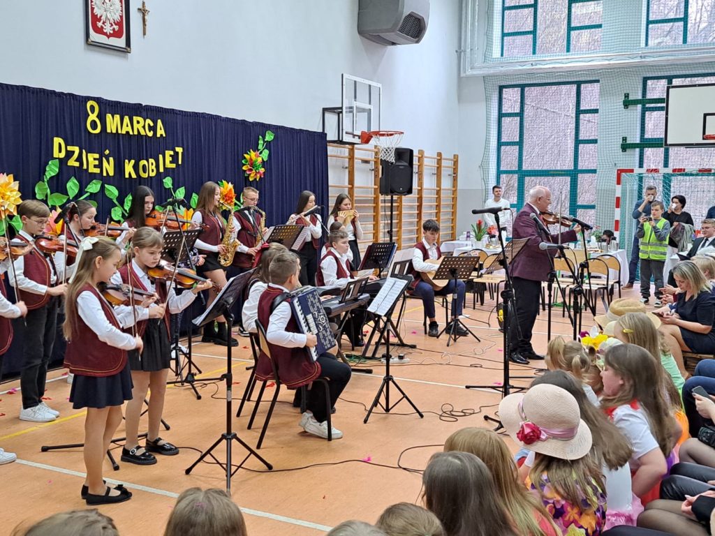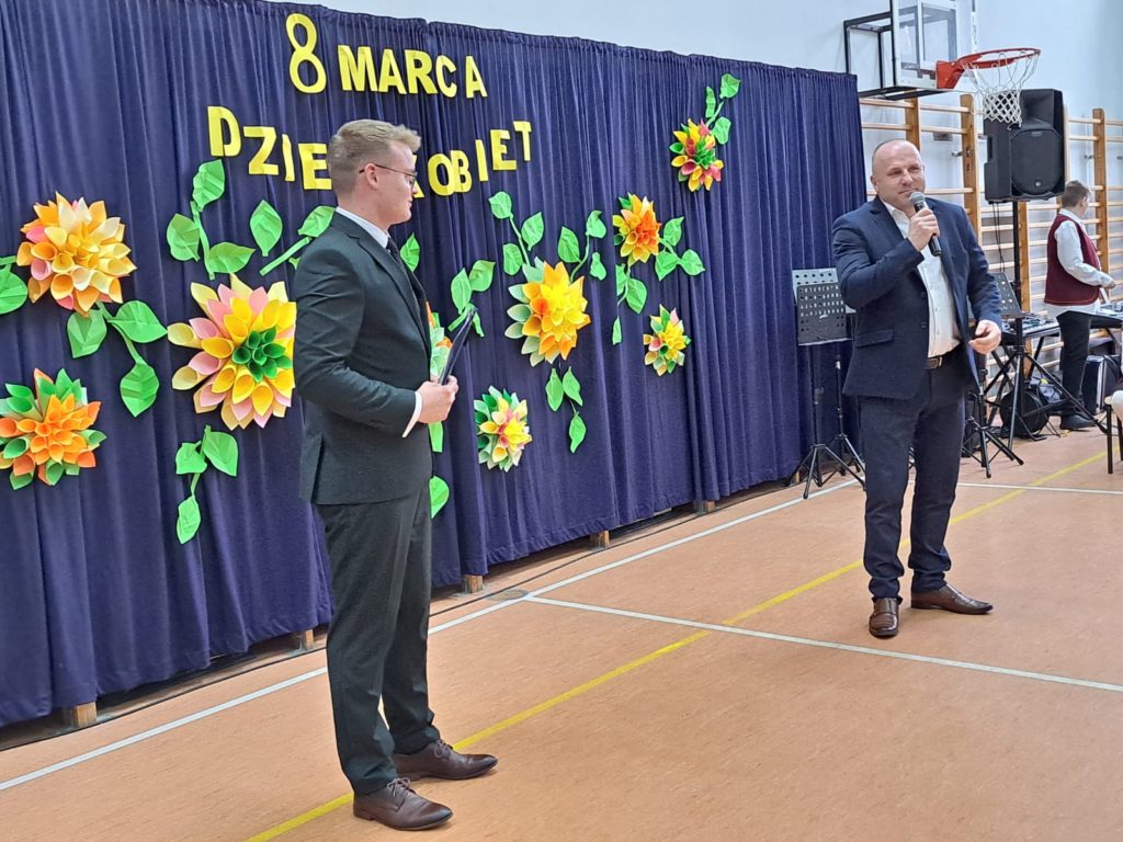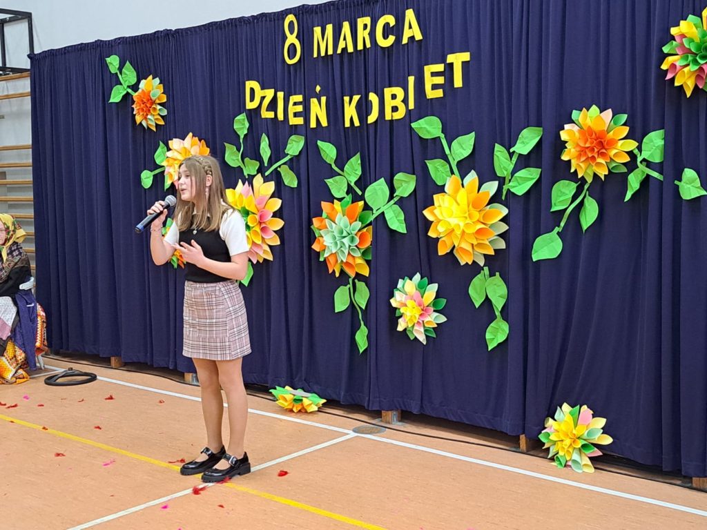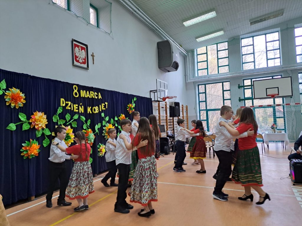 Część artystyczną zainaugurował Zespół Taneczny „Dzieci Cygana”, który wprawił wszystkich w klimatyczny nastrój, wykonując energetyczną wiązankę tańców towarzyskich. Również uczniowie i uczennice ZSP mieli wspaniały wkład w artystyczny program Gminnego Dnia Kobiet: najpierw na scenie zaprezentowały się najmłodsze dziewczęta szkoły, wykonując znany utwór pt. „Być kobietą”, a ich występ dopełniły kolorowe stroje i taneczna choreografia. W świat klasyki i elegancji przeniosła nas uczennica klasy VII, wykonując ponadczasowy utwór „Fly Me to the Moon”. Na koniec Szkolne Koło Wolontariatu przygotowało dla widzów scenkę rodzajową – niebanalną historię, która wywołała rozbawienie oraz uśmiechy na twarzach publiczności.