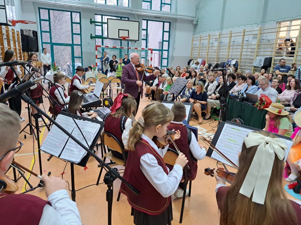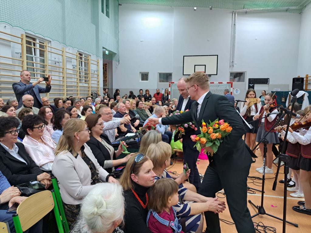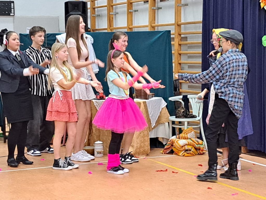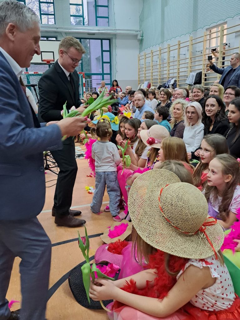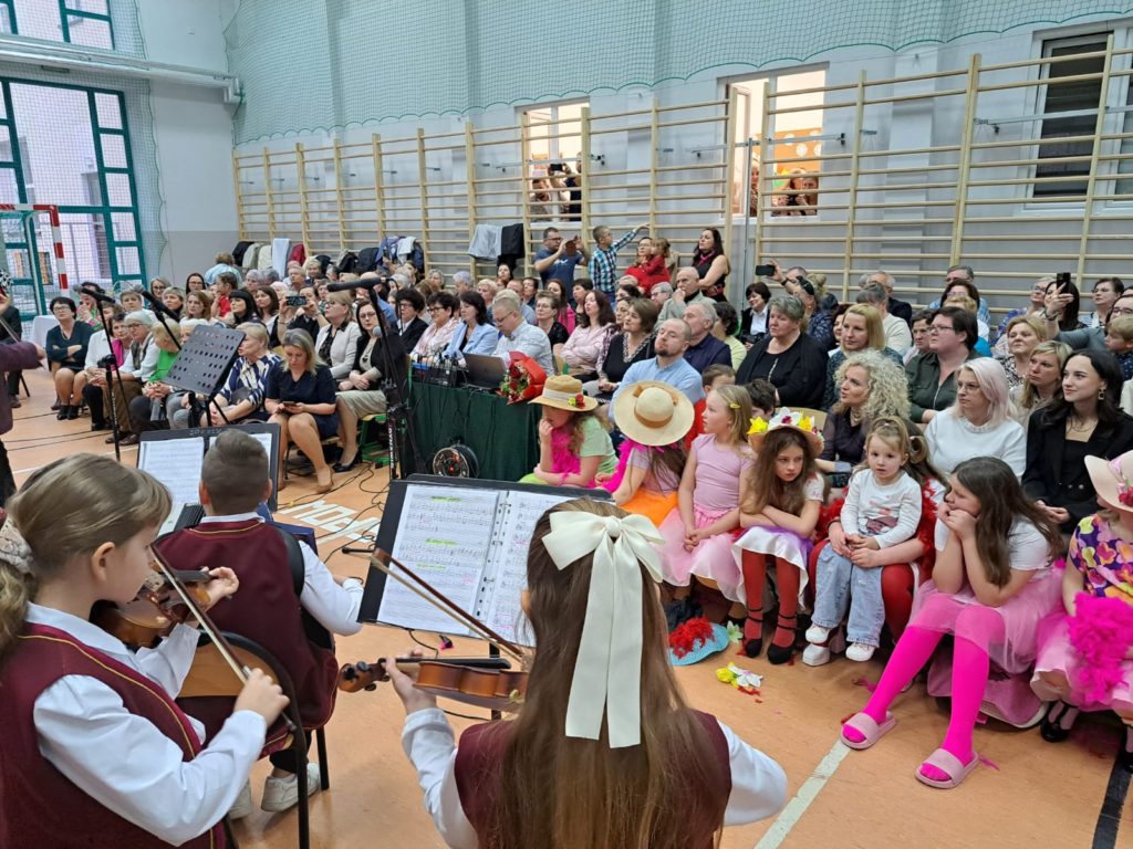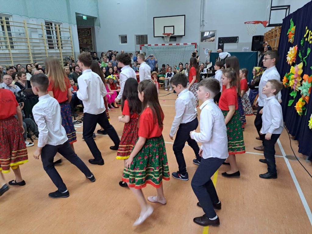 Część artystyczną zainaugurował Zespół Taneczny „Dzieci Cygana”, który wprawił wszystkich w klimatyczny nastrój, wykonując energetyczną wiązankę tańców towarzyskich. Również uczniowie i uczennice ZSP mieli wspaniały wkład w artystyczny program Gminnego Dnia Kobiet: najpierw na scenie zaprezentowały się najmłodsze dziewczęta szkoły, wykonując znany utwór pt. „Być kobietą”, a ich występ dopełniły kolorowe stroje i taneczna choreografia. W świat klasyki i elegancji przeniosła nas uczennica klasy VII, wykonując ponadczasowy utwór „Fly Me to the Moon”. Na koniec Szkolne Koło Wolontariatu przygotowało dla widzów scenkę rodzajową – niebanalną historię, która wywołała rozbawienie oraz uśmiechy na twarzach publiczności.
