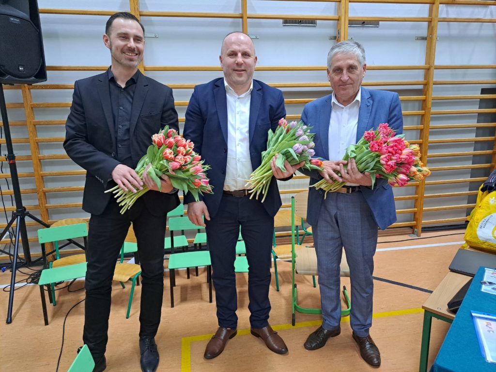 Spotkanie rozpoczęło się oczywiście od serdecznych życzeń dla wszystkich przedstawicielek płci pięknej z terenu gminy, złożonych przez wójta Tomasza Gwizdałę, który następnie wraz z wiceprzewodniczącymi rady obdarowywali kobiety kwiatami.