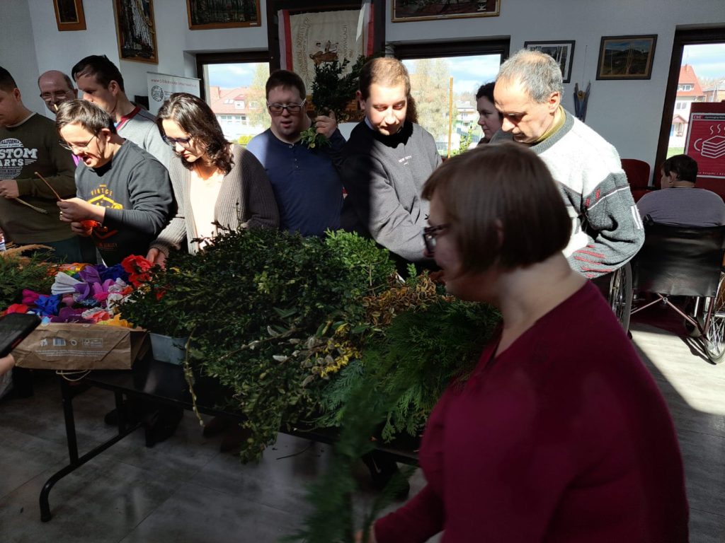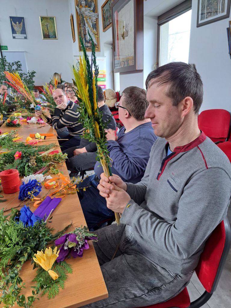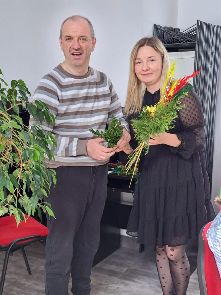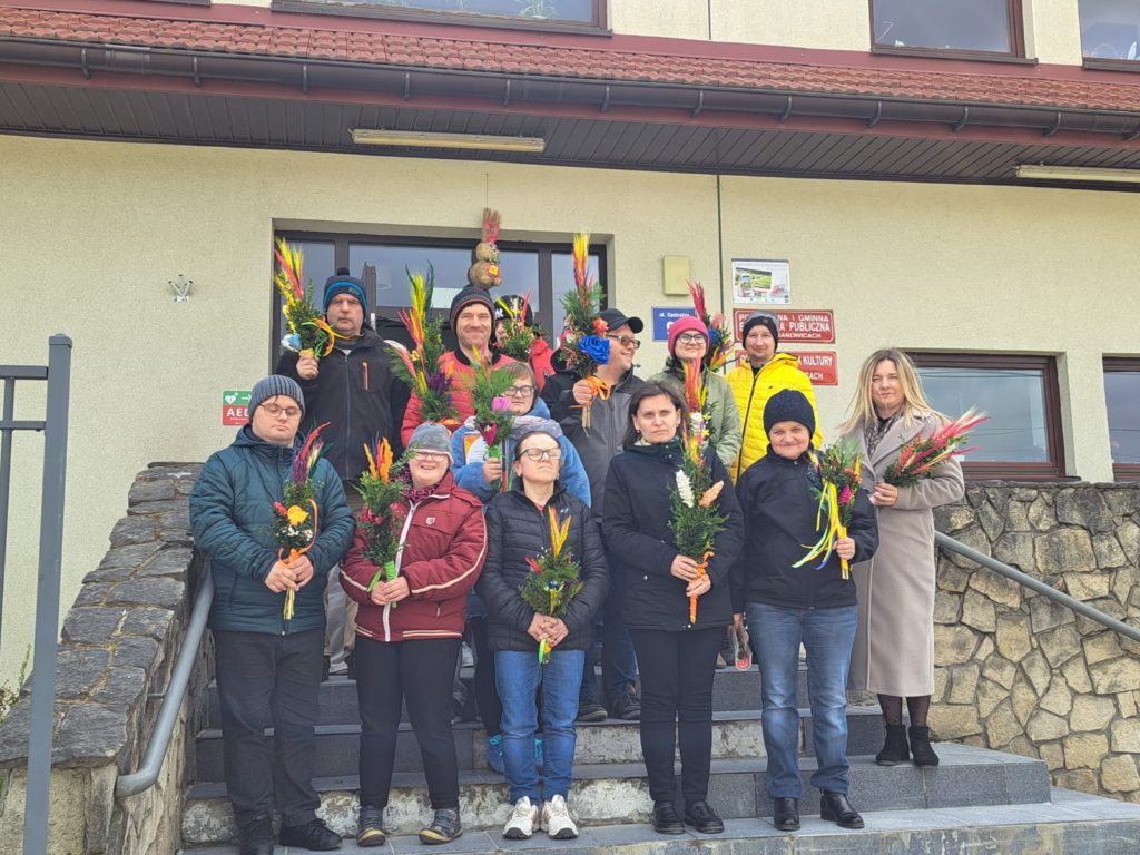 W przedświątecznej atmosferze, w Gminnym Ośrodku Kultury w Jerzmanowicach, odbyły się warsztaty tworzenia palm wielkanocnych z udziałem uczestników Środowiskowego Domu Samopomocy. Spotkanie poprowadziła Pani Monika Kurowska, która z pasją dzieliła się swoją wiedzą i umiejętnościami, krok po kroku pokazując, jak powstaje prawdziwa wielkanocna palma.