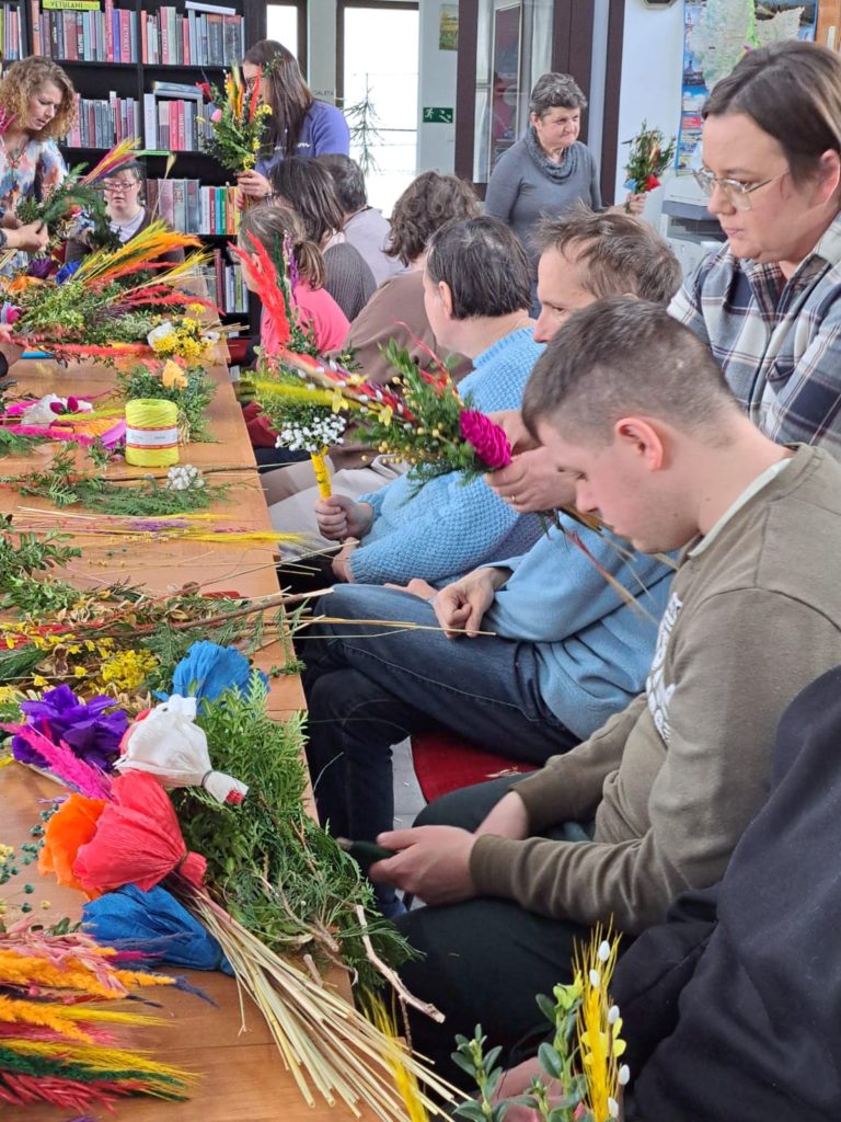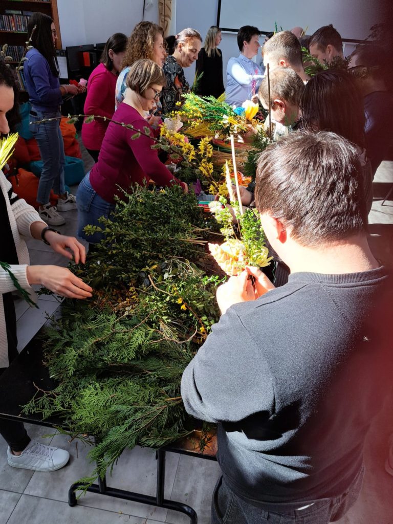 Na zakończenie zajęć każdy mógł zabrać swoją palmę do domu – jako pamiątkę wspólnej pracy i symbol nadchodzących świąt. Warsztaty nie tylko pozwoliły twórczo spędzić czas, ale również przypomniały, jak ważne jest pielęgnowanie wielkanocnych tradycji.