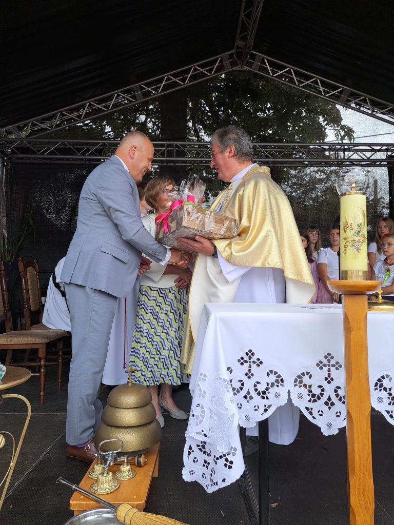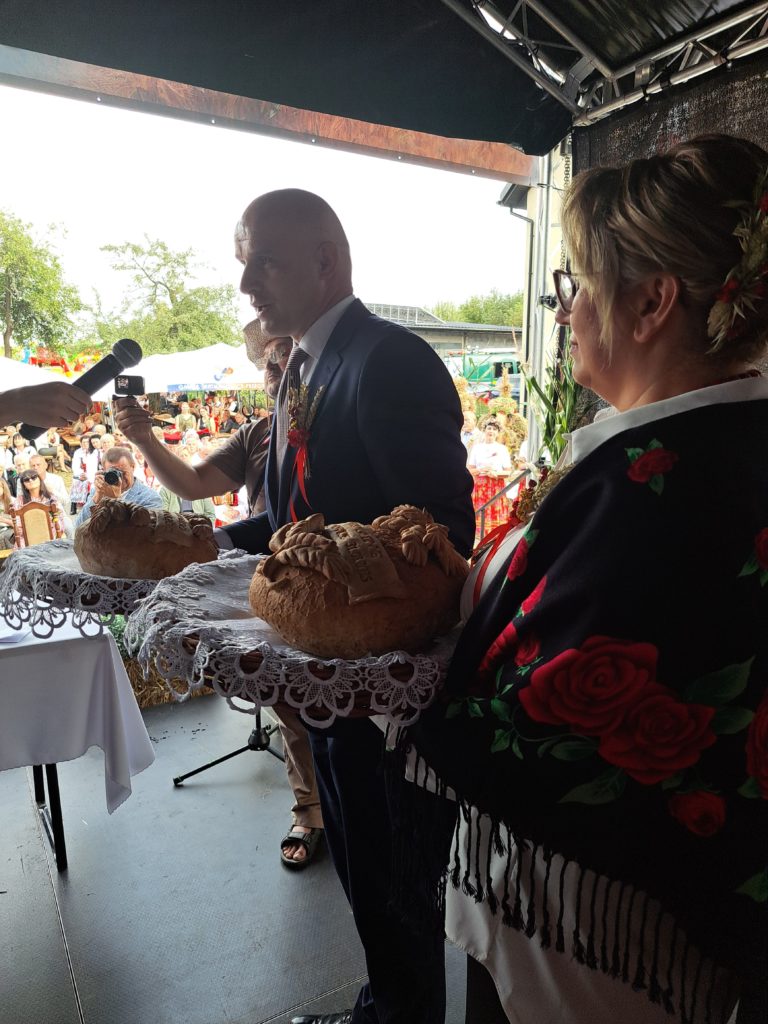 Starostowie dożynek przekazali bochny chleba, znak dostatku, jedności i wspólnoty, na ręce gospodarzy dożynek – wójta Tomasza Gwizdały i sołtys Krystyny Kiełkowicz. Następnie zaproszeni goście częstowali chlebem wszystkich uczestników święta plonów.