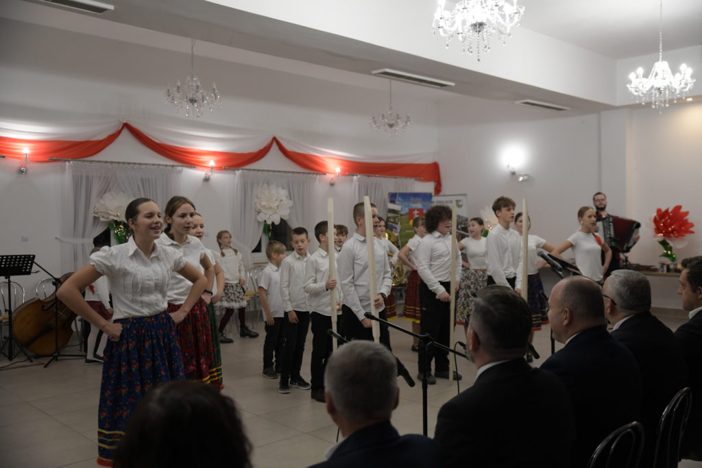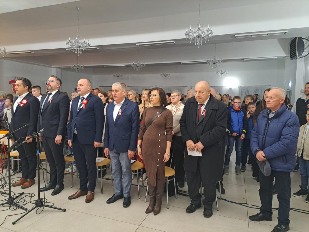 Uroczystość rozpoczęła się od odśpiewania hymnu państwowego przy akompaniamencie Orkiestry Dętej z Przegini.. Po oficjalnym powitaniu uczestników przez Wójta Gminy Tomasza Gwizdałę, rozpoczęła się część artystyczna, która w patriotycznym duchu dostarczyła wielu wzruszeń, dumy i radości z bycia Polakami.