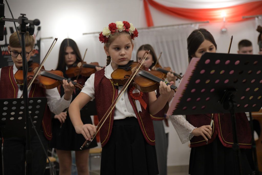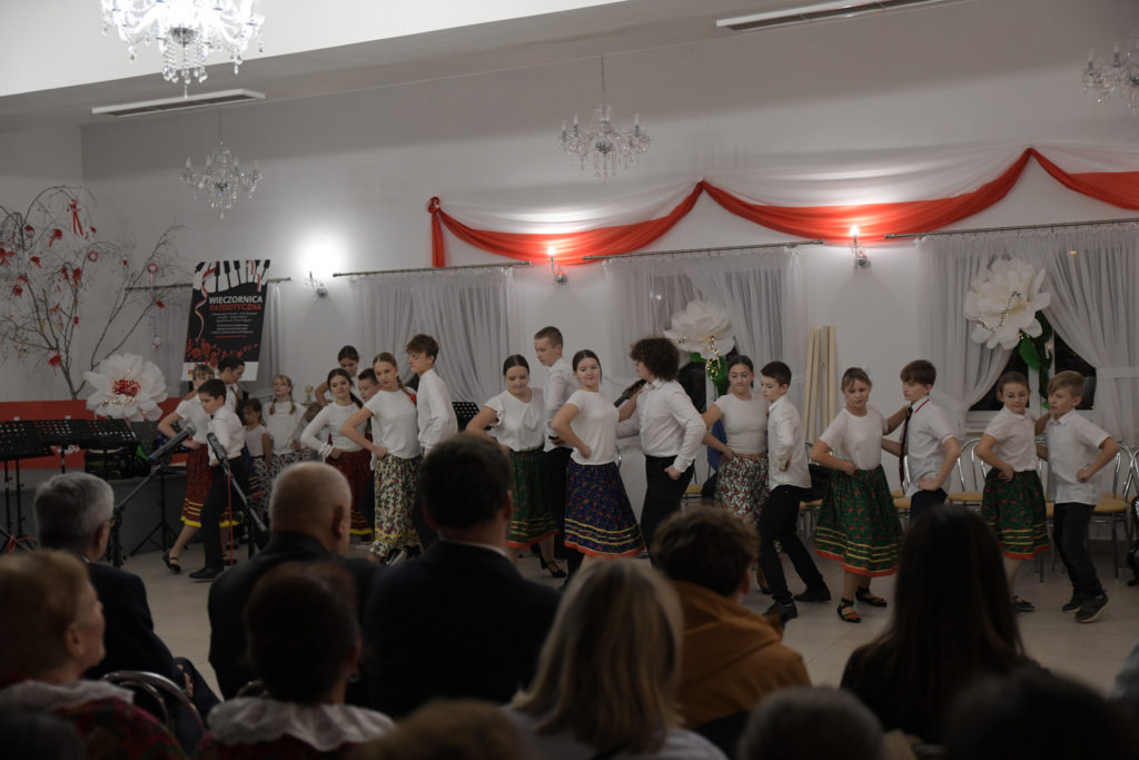 Na scenie zaprezentowali się: zespół taneczny „Dzieci Cygana”, Koło Gospodyń Wiejskich „Przeginianki” oraz zespół „Sokoły” pod dyrekcją Vasyla Stefanyuka. W ich wykonaniu można było podziwiać barwne tańce narodowe i wzruszające pieśni patriotyczne. Nie zabrakło też wyjątkowych występów laureatów Gminnego Konkursu Polskiej Pieśni Patriotycznej: Igora Kowalskiego, Katarzyny Mazur, Leny Stach, Kai Redel i Moniki Nabagło, którzy swoimi talentami podbili serca publiczności.