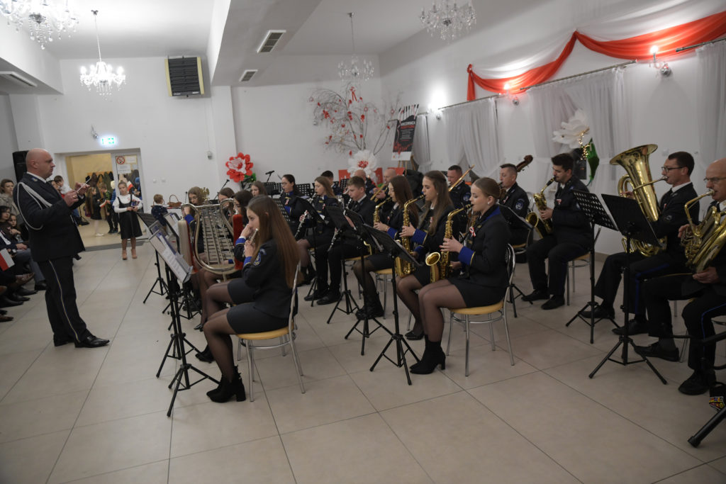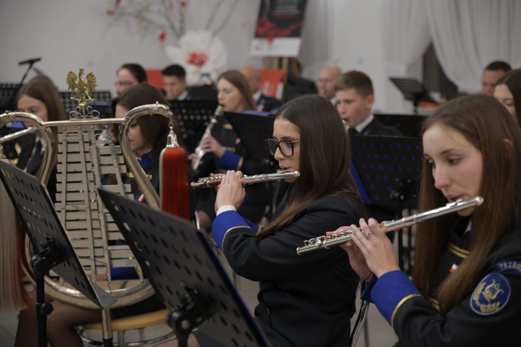 Wieczór zakończyło wspólne śpiewanie pieśni patriotycznych z towarzyszeniem Orkiestry Dętej pod batutą Patryka Mietły.