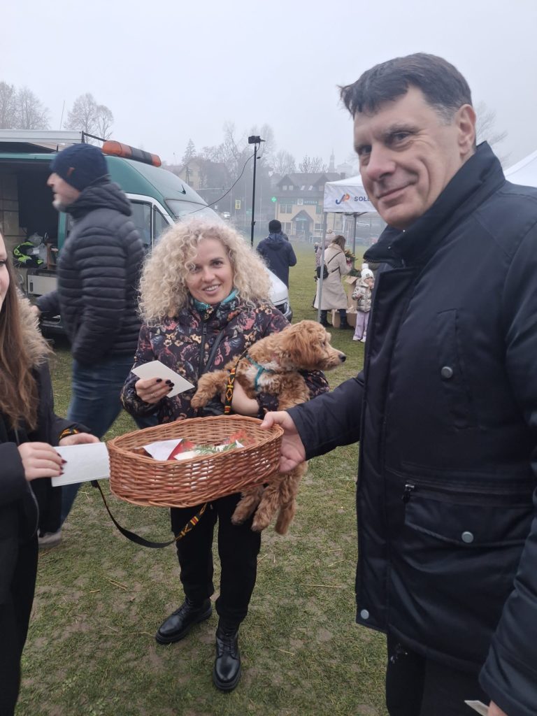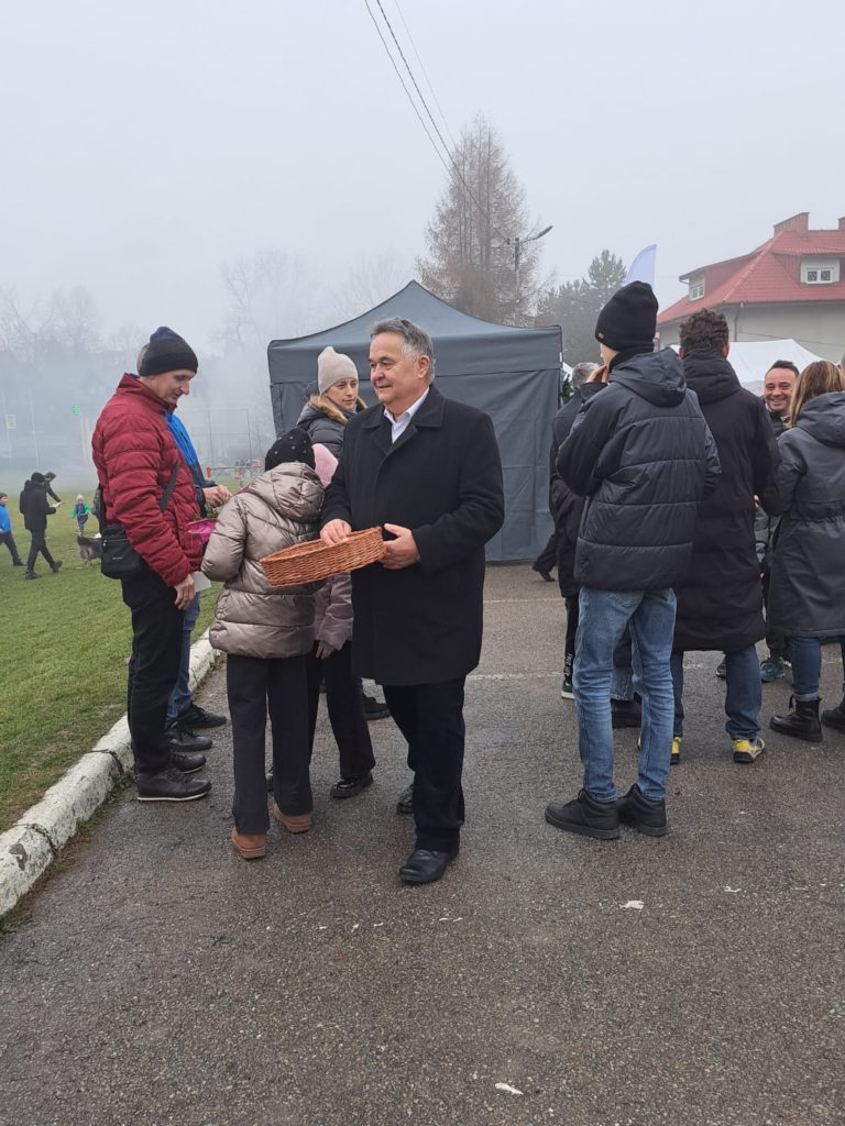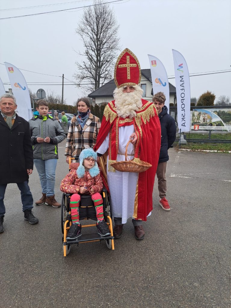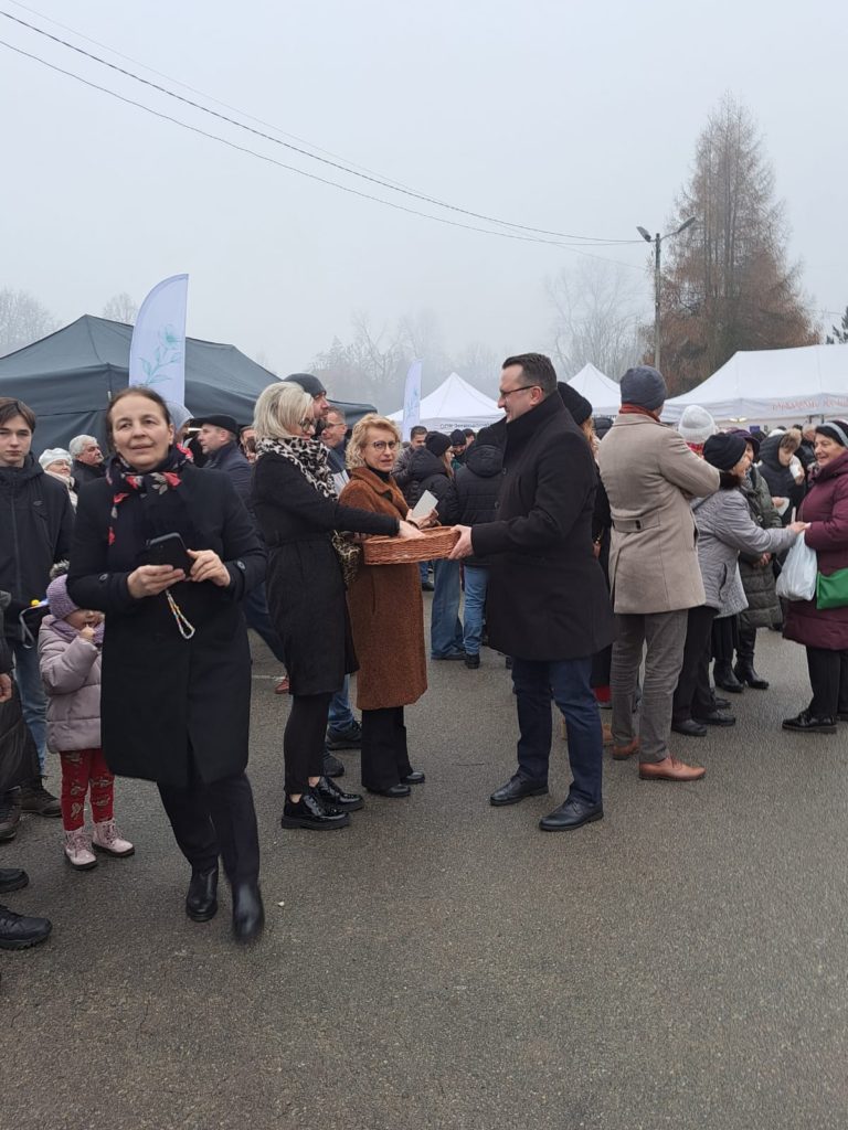 Podczas spotkania nie zapomniano również o potrzebujących. Prowadzona była zbiórka na rzecz Sandry z Jerzmanowic – ośmioletniej dziewczynki zmagającej się od urodzenia z dziecięcym porażeniem mózgowym. Wolontariusze ze Szkoły Podstawowej w Sąspowie zbierali datki na jej rehabilitację, a w podziękowaniu wręczali kartkę promującą gminę z motywem Żywej Szopki. Dziękujemy wszystkim darczyńcom – każdy gest ma ogromne znaczenie.
